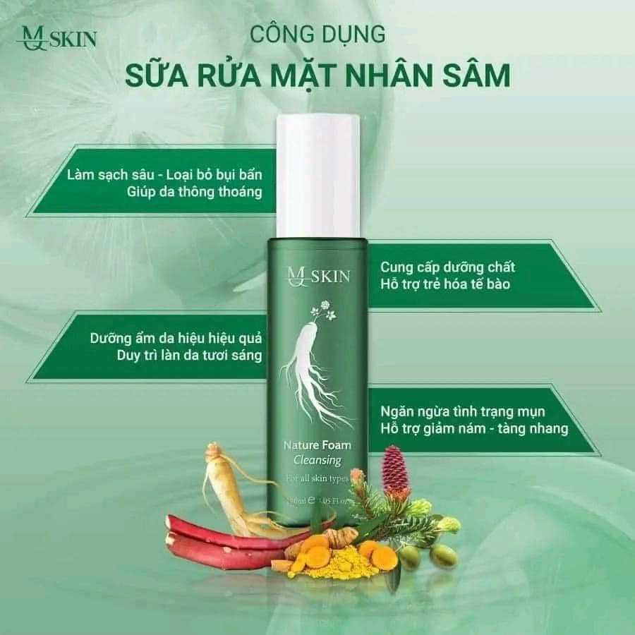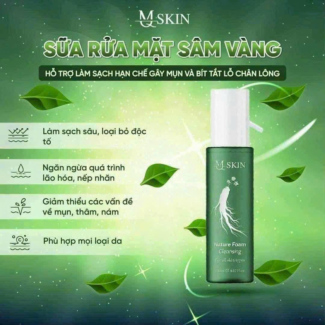 Với những thành phần tự nhiên này, Sữa Rửa Mặt Sâm Vàng MQ Skin không chỉ làm sạch da mà còn cung cấp dưỡng chất cần thiết và chăm sóc làn da một cách toàn diện.